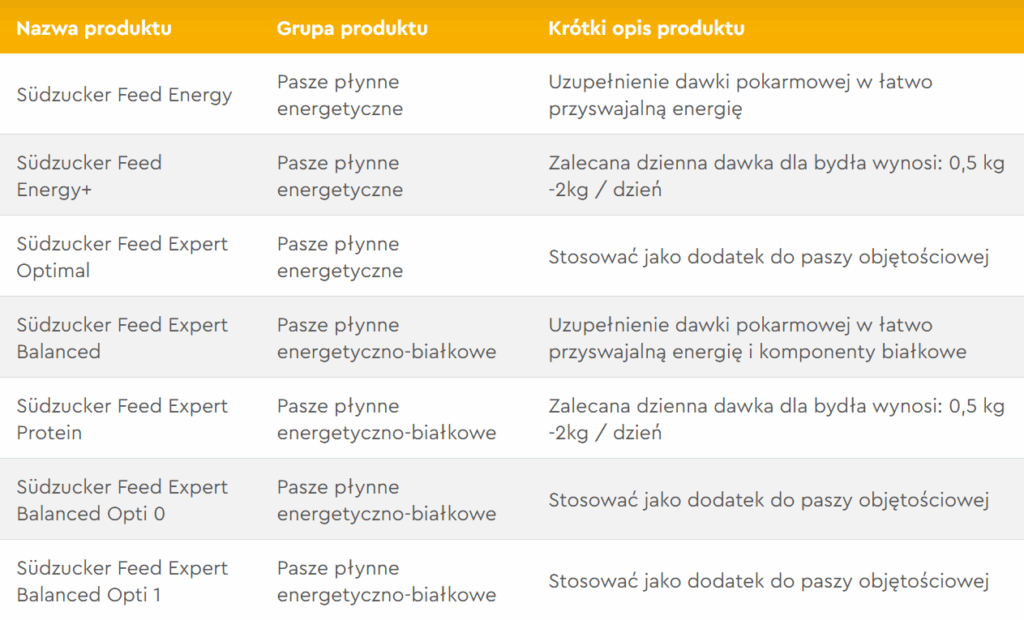 Nasze wyjątkowe pasze płynne to produkty wytwarzane przez Südzucker Polska. Ich głównym składnikiem jest melasa buraczana, produkowana w naszych polskich cukrowniach. Co więcej, nasze pasze zawierają również inne składniki, które wzbogacają ich walory żywieniowe. W szczególności zróżnicowane poziomy białka, które stanowią kluczowy element naszych produktów.